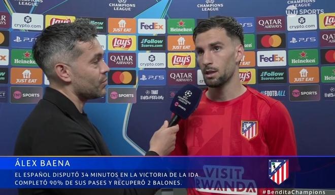 欧冠1/4决赛首回合,马竞客场2-0战胜巴萨,巴埃纳赛后接受了TNT体育墨西哥频道的采访。
