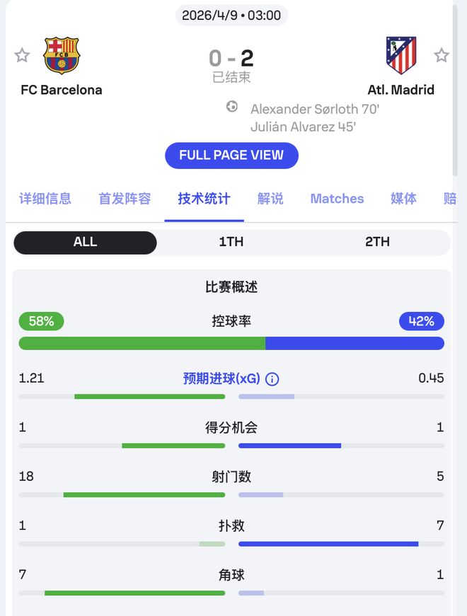 对比来看巴萨在很多数字方面的确是占优,比如射门及控球率等等,不过马竞策略上很成功,他们对巴萨弱势项太过熟悉,也给出针对性布置。因此次回合对弗里克来讲重要的不是占优问题,是怎么不再被这个宿敌打到这软肋的问题。可是,这些弱势项可不是临时才有的,想要解决,没那么好办。