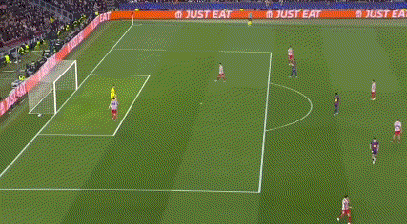 阿尔瓦雷斯主罚任意球,距离球门约18米,一脚质量极高的弧线球直挂右上死角。霍安·加西亚飞身扑救仍无能为力。马竞1-0进入中场休息。
