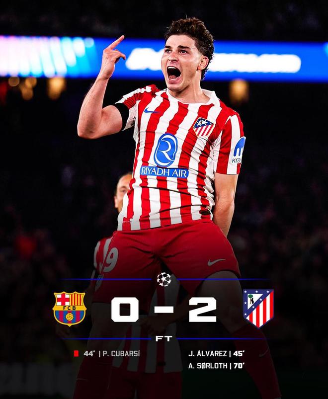 第70分钟,马竞打出经典反击。巴埃纳左路送出精准直塞,鲁杰里插上传中,替补登场的索尔洛特门前抢点推射破门,2-0!这个进球几乎宣告比赛结束,也把巴萨推到了悬崖边缘。带着两球劣势前往大都会球场,次回合等待他们的将是一场近乎不可能完成的翻盘任务。